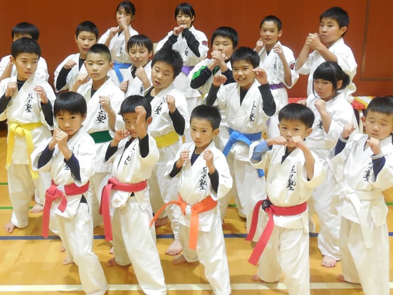 烈士塾大屋支部では全ての会員の方に明るく楽しく空手の稽古が出来る様に指導させて頂いています。空手は武道ですので、礼儀を大切にしています。誰にでもしっかり挨拶をする、返事を大きな声でするなど、礼儀を徹底して指導致します。そして空手の稽古を通じて、体力・忍耐力が身につく様に指導させて頂きます。稽古の中には辛く厳しい事もあります。しかし、それを乗り越える事で自信がつきます!