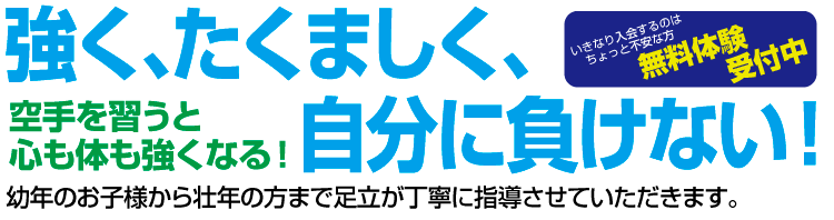 稽古は1人でするのではなく、仲間と一緒にします。そうする事で厳しい稽古も乗り越えられ、協調性もみにつき心も体も強くなります! さあ!烈士塾空手を始めて心体の成長を目指しましょう!